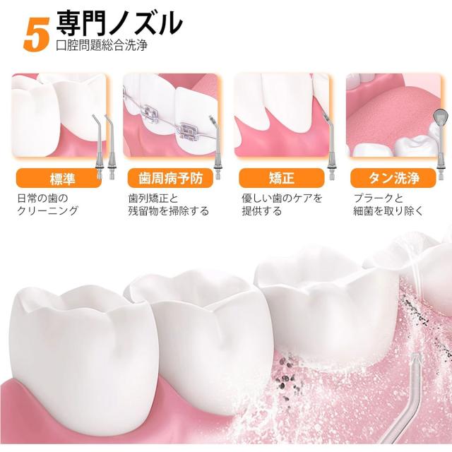 口腔洗浄器 ジェットウォッシャー 歯間ケア USB充電式 4種類モード 替えノズル5本付き 口腔ケア コンパクト 外出用 IPX7防水 家庭用 旅行用