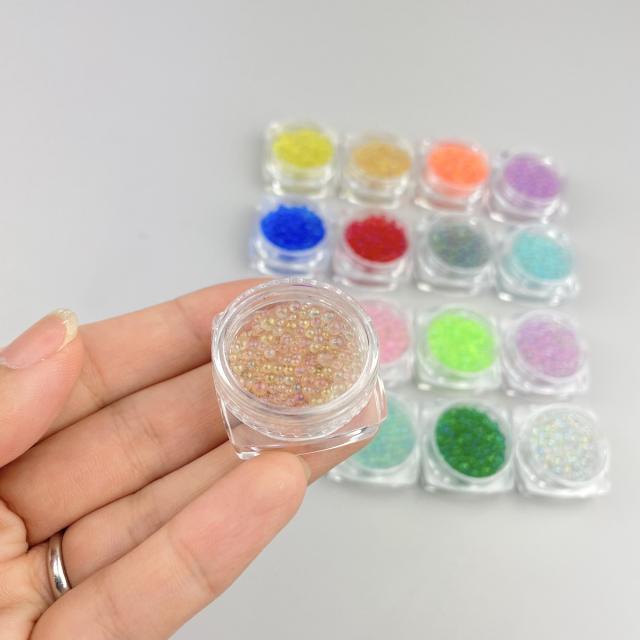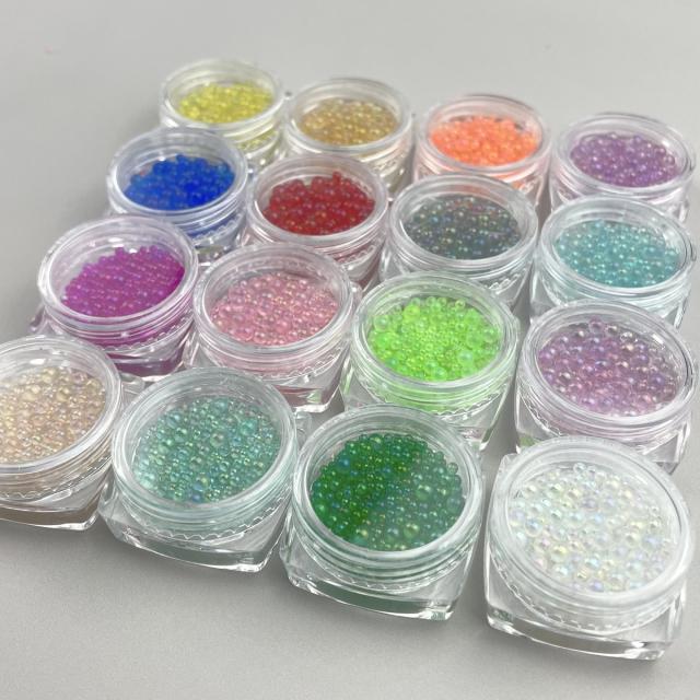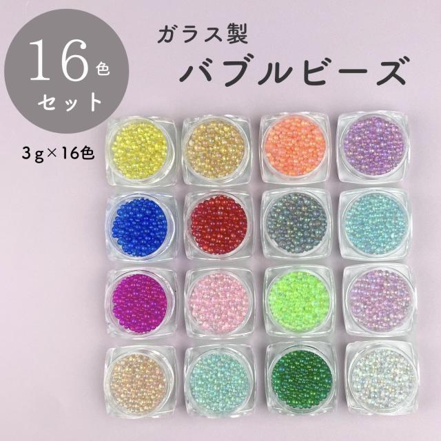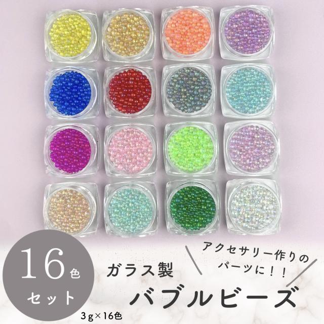 16色セット 封入パーツ ガラス製ビーズ バブルビーズ レジン 封入物 丸ビーズ 穴なし アクセサリー パーツ デコ ネイルパーツ レジン封入物 素材 シリコンモールド シェイカーモールド