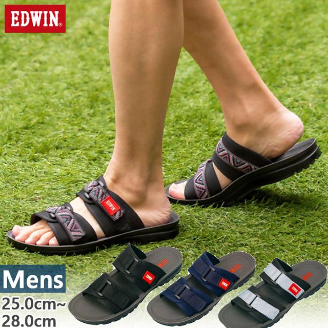 エドウィン メンズ スライドサンダル ダブルストラップ スポーツサンダル シューズ ブラック 黒 ネイビー シルバー 送料無料 EDWIN EW5102