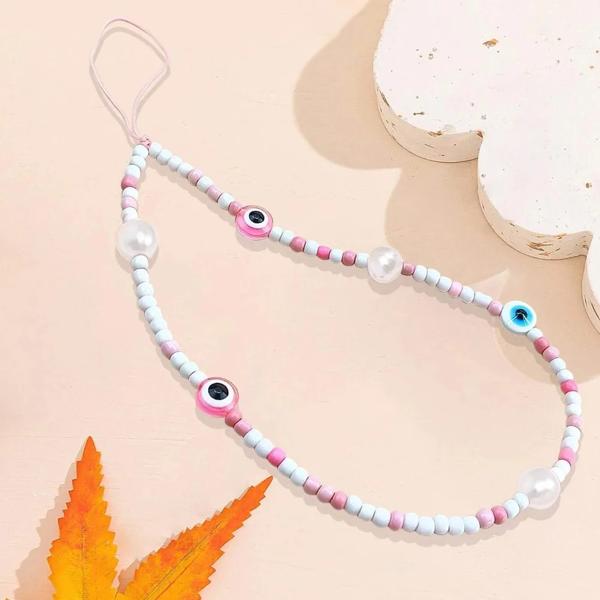 女の子のための青い邪眼電話チェーン,ヴィンテージガラスライスビーズ,電話ストラップ,ピンクとブルー,携帯電話ストラップ,ファッションギフト
