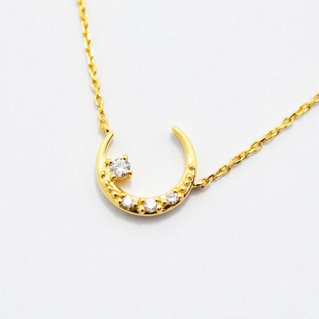 ダイヤモンドが煌めく、小ぶりなムーンモチーフが可愛いらしいヨンドシーのネックレスです。 新品仕上げ済みです。