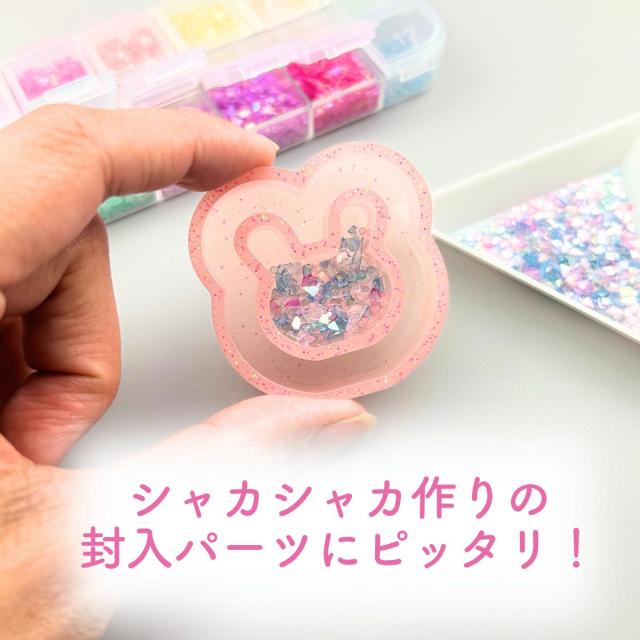 キラキラととっても可愛いガラス製のレジン封入パーツ。キーホルダー作りなどレジン制作の封入におすすめの小さなパーツです。