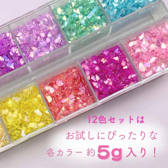 お試し12色セット 封入パーツ カラフルカレット ガラス パーツ レジン 封入 素材 シリコンモールド シェイカーモールド アクセサリー パーツ シャカシャカ レジン シェイカー デコネイル 資材 材料 手芸