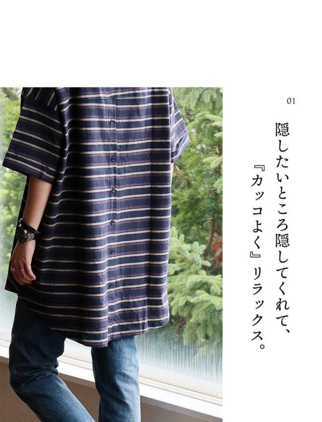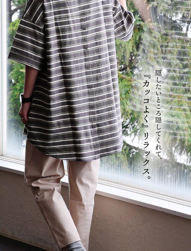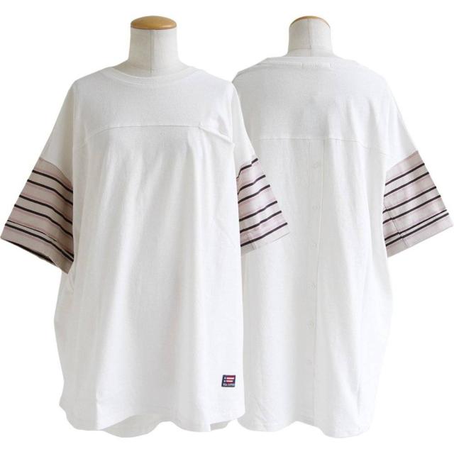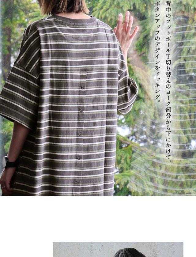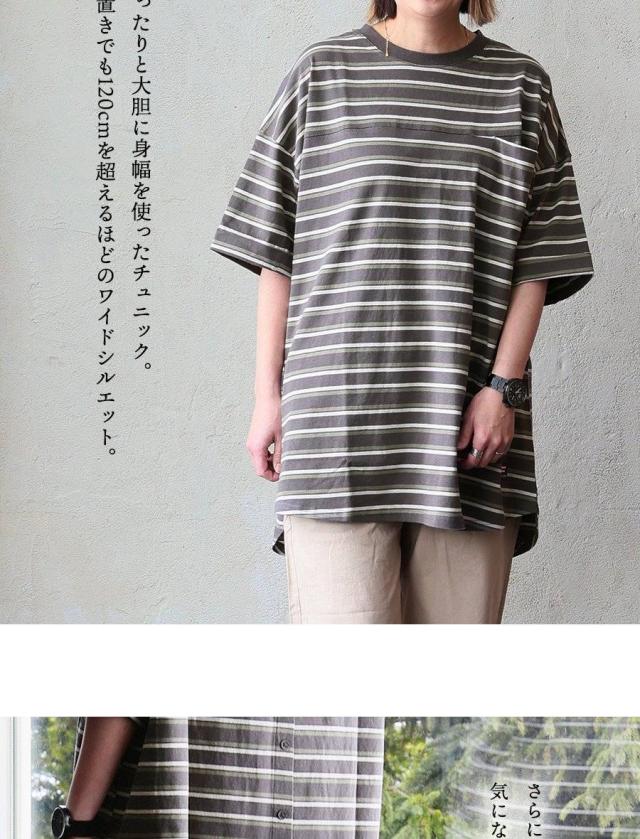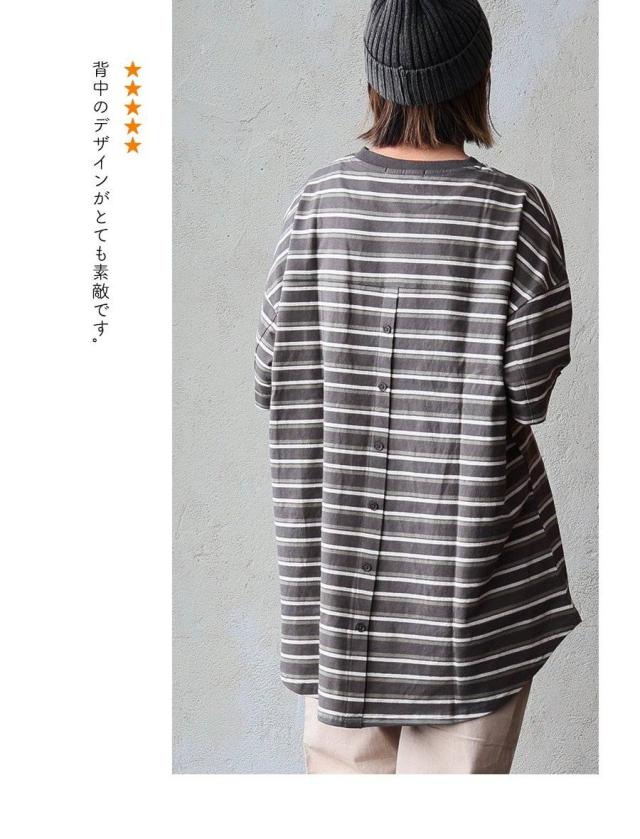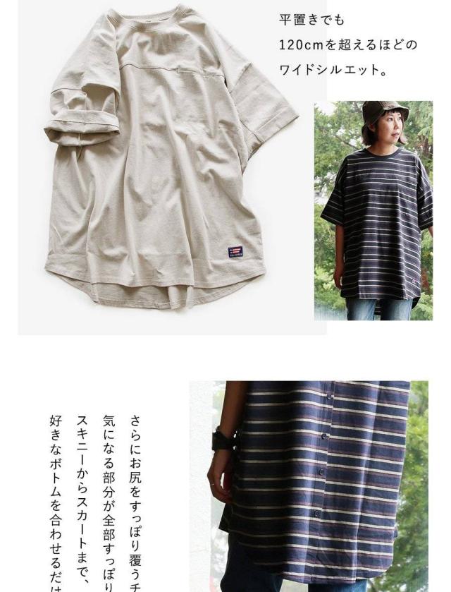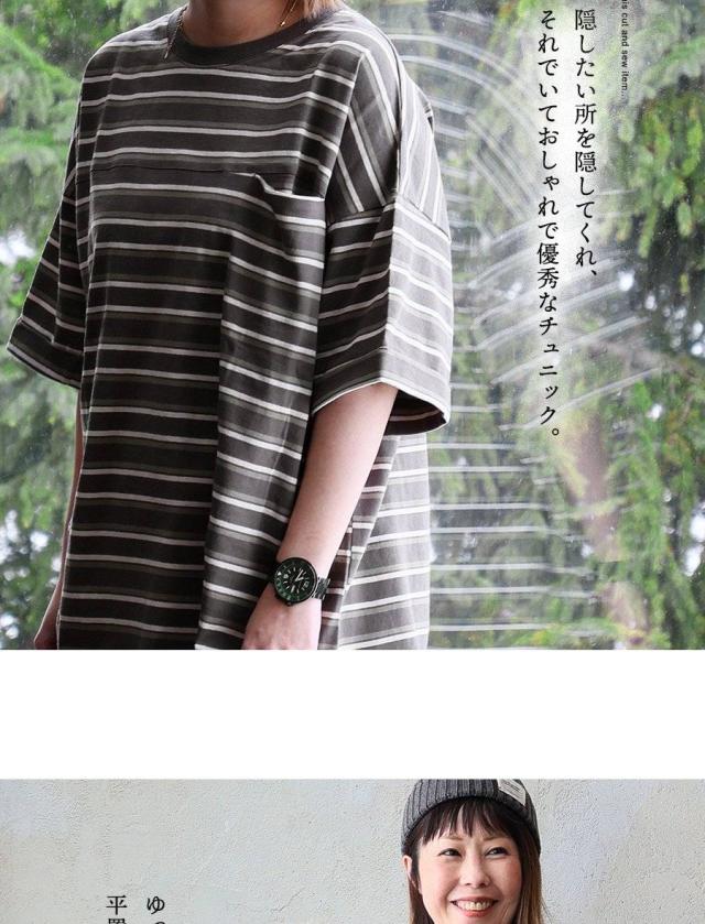 着痩せ チュニック tシャツ ロング ワイド レディース 五分袖 すっきり 切替 ゆったり tシャツ しっかり 柔らか 綿100% USA コットン バック ボタン ポケット お尻 二の腕 隠れる カバー 5分袖 半袖 大人 カジュアル パティ