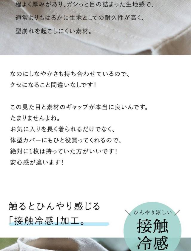 ・長く着てもくたびれにくい、米綿100%の天竺地。