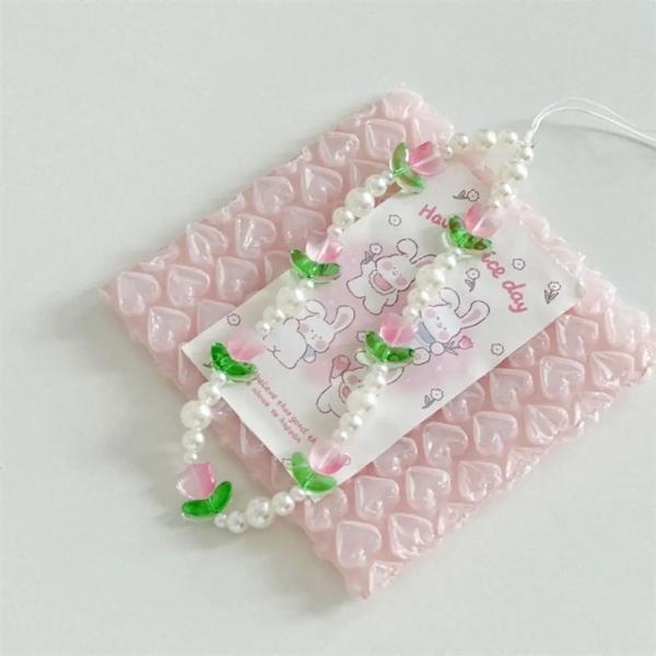 カラフルなパールチューリップ電話ストラップ、車のキーホルダー、ストラップ電話ストラップ、2024