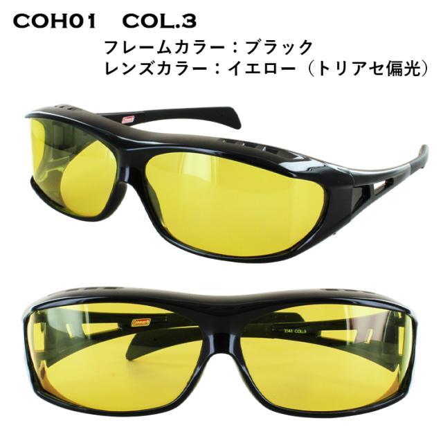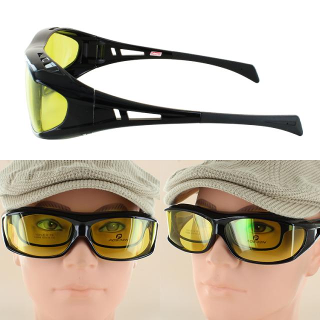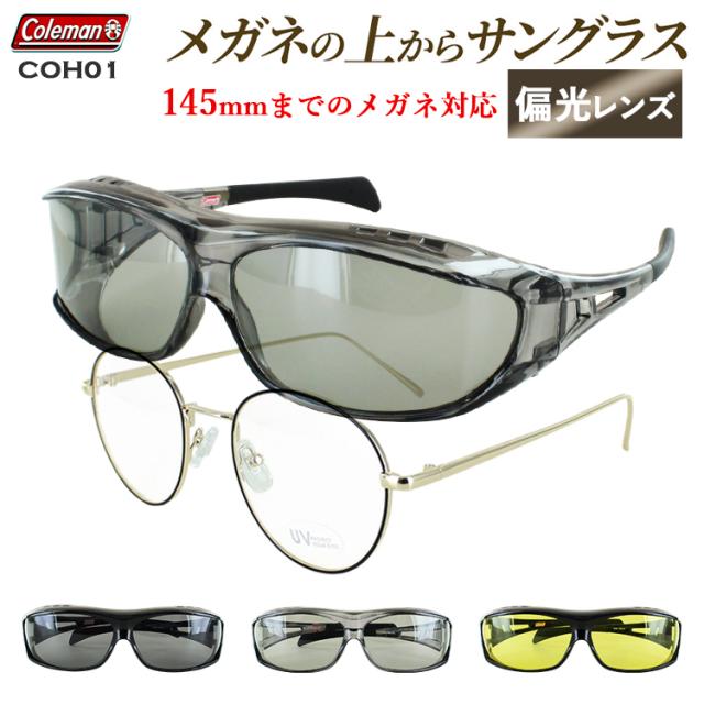 サングラス メガネの上から コールマン 偏光サングラス オーバーグラス 大型メガネ対応 145cmまで メンズ レディース ブランド UVカット Coleman COH01 グレー ライトスモーク イエロー 夜間運転対応 眼鏡の上からかけられる 運転 ドライブ 釣り アウトドア