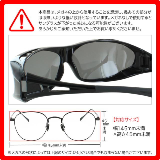 | 商品詳細 COLEMAN コールマン メガネの上からサングラス 偏光レンズ 眼鏡の上から使用可能なオーバーグラスタイプ。 メガネの上から着用可能!大型メガネも収まるオーバーグラス。 サイトリムを取り払ったデザインで、広い視野を確保。 左右の視界を最大限に確保しながら、サイドからの日差しもシャットアウトします。 対応可能なメガネサイズ (約)全幅145mm×高さ45mm未満のメガネ 男女兼用モデルですので、メンズ、レディースどちらもご着用いただけます。 ※メガネの形状によっては、上記サイズより小さい場合でも収まらない場合がございます。 あらかじめご了承のうえ、お買い求めお願いします。 【偏光サングラスの特徴】 車の運転、ドライブ中のフロントガラスの映り込み、路面の日差しの照り返しをカットし、 フィッシング、釣りで水面からのギラつきを抑え、水中の様子を見やすくします。 スポーツ、 ウォーキング、アウトドアシーン、レジャー・旅行、登山などで、様々なシーンで眩しさを抑えて、目に優しいクリアな視界を確保します。 | |