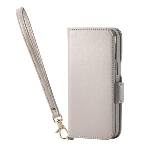 iPhone 16e ケース レザー 手帳型 マグネット フラップ 衝撃吸収 ストラップホール付 ハンドストラップ付 スタンド機能付 カードケース機能付 グレージュ(代引不可)【送料無料】