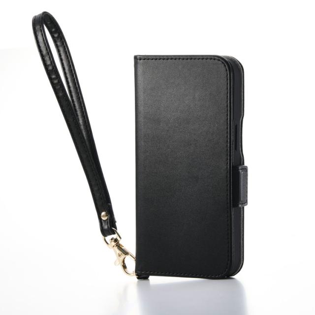 iPhone 16e ケース レザー 手帳型 マグネット フラップ 衝撃吸収 ストラップホール付 ハンドストラップ付 スタンド機能付 カードケース機能付 ブラック(代引不可)【送料無料】