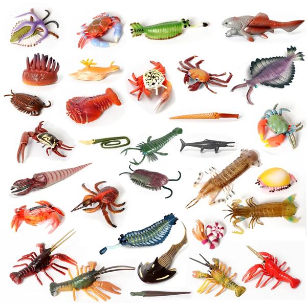 先史時代の先史時代の海の生物の動物の置物baculite、opabinia、カニ、マンティスエビ教育海洋動物モードのフィギュア