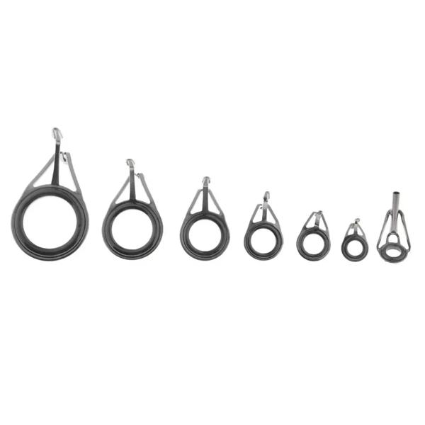さまざまなサイズの釣り竿ダブルレッグガイド 7 個。