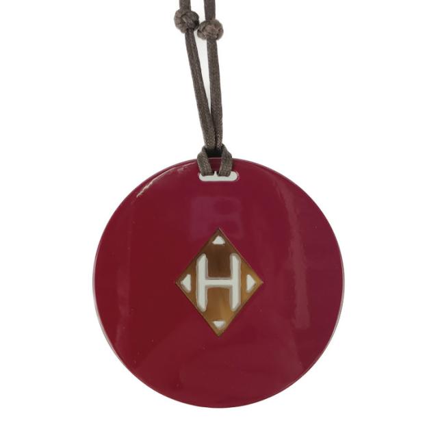 美品 HERMES エルメス ネックレス Hロゴ - ボルドー系 ブラウン系 バッファローホーン ラッカー ユニセックス ペンダント【本物保証】