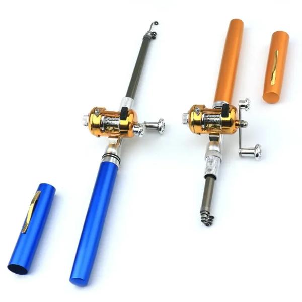 20 センチメートルポータブルポケット伸縮ミニ釣竿ペン形状折りたたみ釣竿リールホイールポータブルミニ釣竿