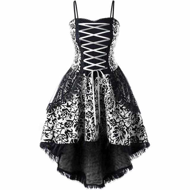 ワンピース レディース ドレス ゴスロリ ロリータ 膝丈 赤 黒 キャミソールワンピース レース ゴシック ワンピース パンク 洋服
