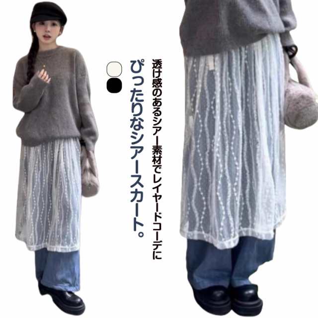 | 透け感のあるシアー素材でレイヤードコーデにぴったりなシアースカート。 気分を盛り上げてくれる綺麗なレース柄は大人可愛さで映える! チュール特有の透け感のあるシアー素材なので、軽やかに可愛らしく着用できます。 普段のコーデにサッと巻くだけでこなれ感のあるトレンドコーデが完成◎ レイヤード次第で何通りものスタイリングが楽しめるので、1着持っておけばコーデの幅が広がります。 | |