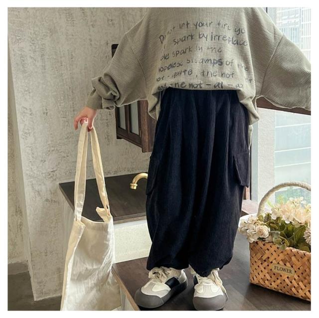 シンプル バギーパンツ 子ども ポケット ボトムス ボトム 冬 ズボン ワイドパンツ キッズ カーゴパンツ 秋冬 かわいい 女の子 おしゃれ 子供服 可愛い 120cm ナチュラル 無地 春 春秋 コーデュロイ キッズ 80cm 90cm 100cm 110cm 長ズボン 130cm 140cm 150cm
