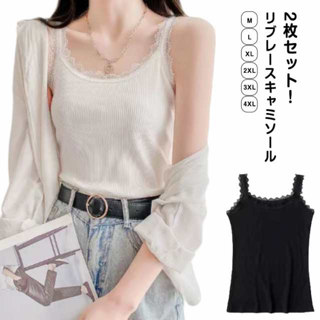 レース キャミソール インナー 肌着 リブ 薄い 綿 レディース レイヤード 下着 シンプル チラ見せ 無地 重ね着 トップス 大きいサイズ タンクトップ 女性 2枚セット オールシーズン