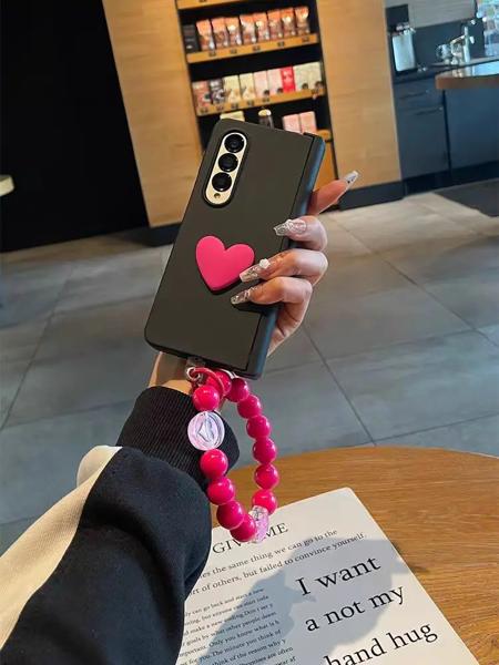 携帯電話ケース,Samsung Galaxy用耐衝撃ケース,プリーツ,ハート,パールブレスレット,リストチェーンストラップ,韓国ファッション,3, 4, 5,w22,w23,w24