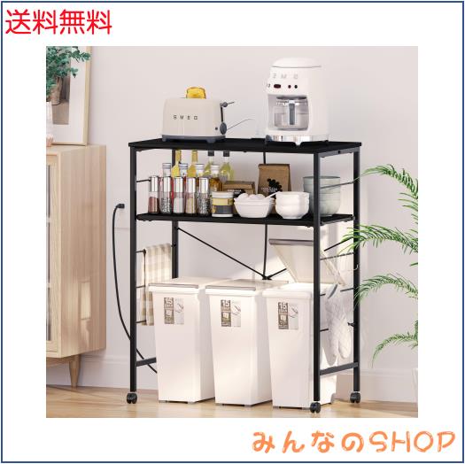 LunarLight ごみ箱上ラック キッチンベイカーラック 幅80×奥行40×高さ100cm 電子レンジ台 オープンラック プリンタ台 2口コンセント付