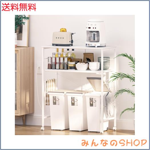 LunarLight ごみ箱上ラック キッチンベイカーラック 幅80×奥行40×高さ100cm 電子レンジ台 オープンラック プリンタ台 2口コンセント付
