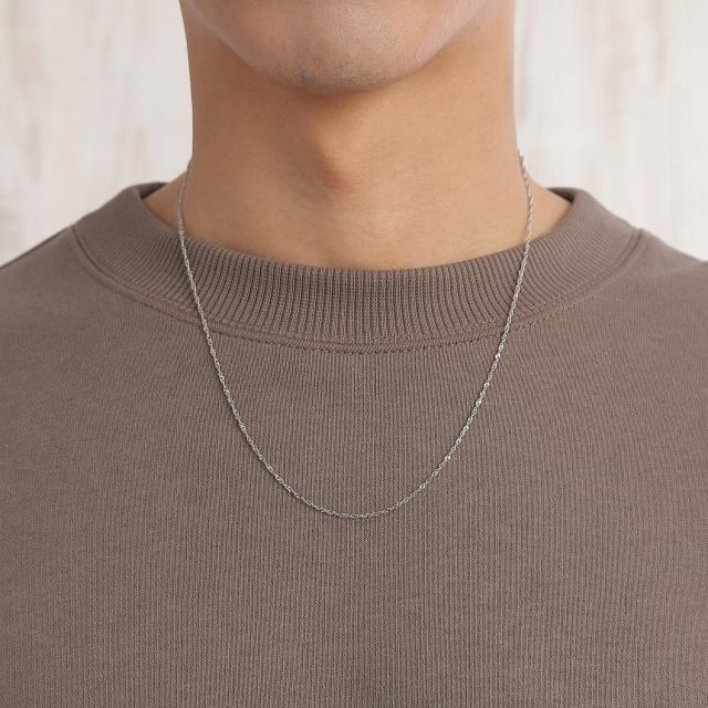 螺旋状に編まれたキラキラなネックレスチェーン。