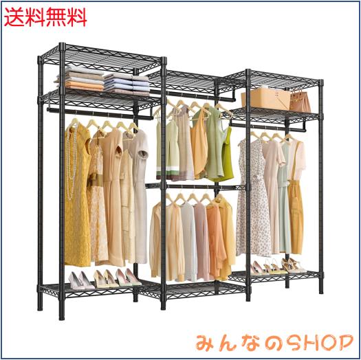 【ハンガーラック 商品サイズ】商品仕様:幅約174×奥行40×高さ195cm(アジャスター含む) ;洋服ラック本体重量(約):17.9kg;全体耐荷重(約):230kg;お客様組み立てが必要な商品です。ワードローブ豊富な収納スペースを備え、あらゆる種類の服を掛け、布団を収納可能。シンプル収納棚には下着、パンツ、日常の小物などを簡単に収納可能。下に靴下やポクッスなども収納可能。