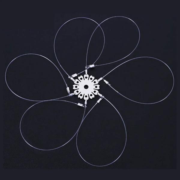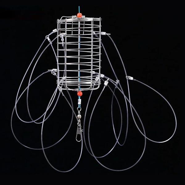 The crab jacket works by a slipknot, in which a wire is inserted into the bait. When the crab eats, the movable buckle hangs on its leg, and the more it struggles, the tighter the buckle.