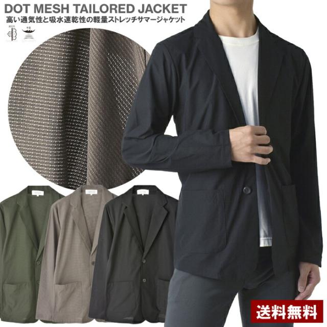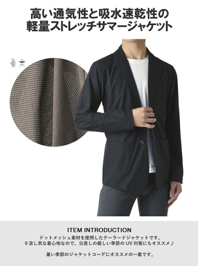 メンズ ドットメッシュ テーラードジャケット サマージャケット 夏 吸水速乾 軽量 ストレッチ 通気性 DRY UV対策 カジュアル ビジカジ【B1Y】【パケ1】