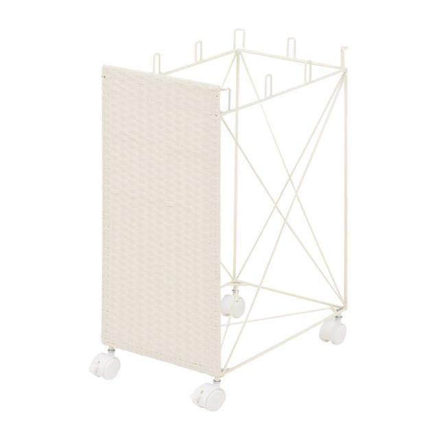 ビニール袋をかけて分別が可能なダストワゴン。1面に樹脂を編み込んでおり目隠しになっています。
