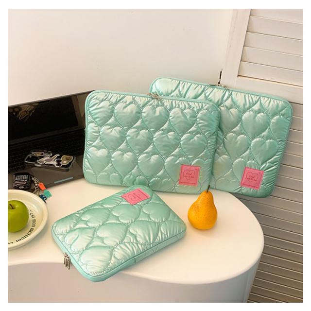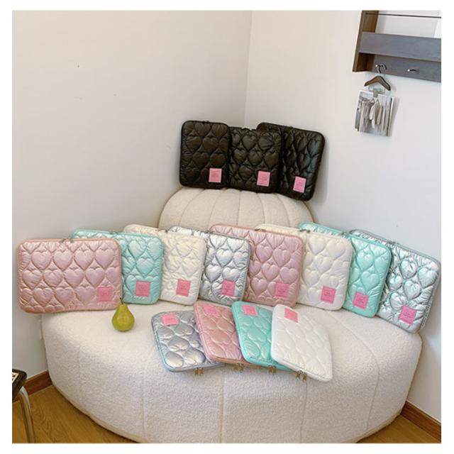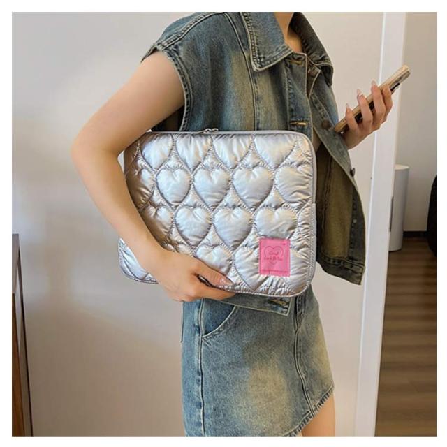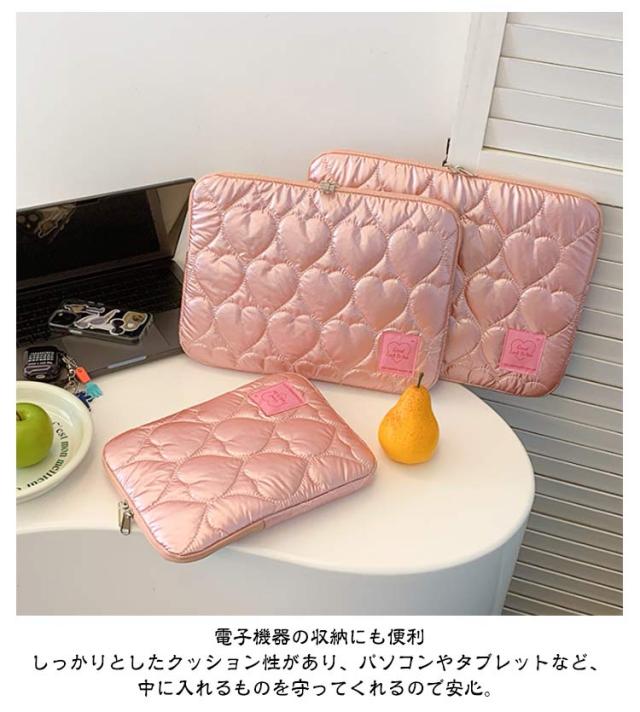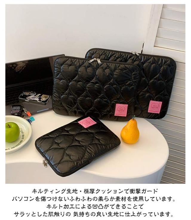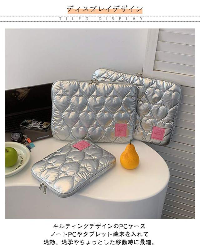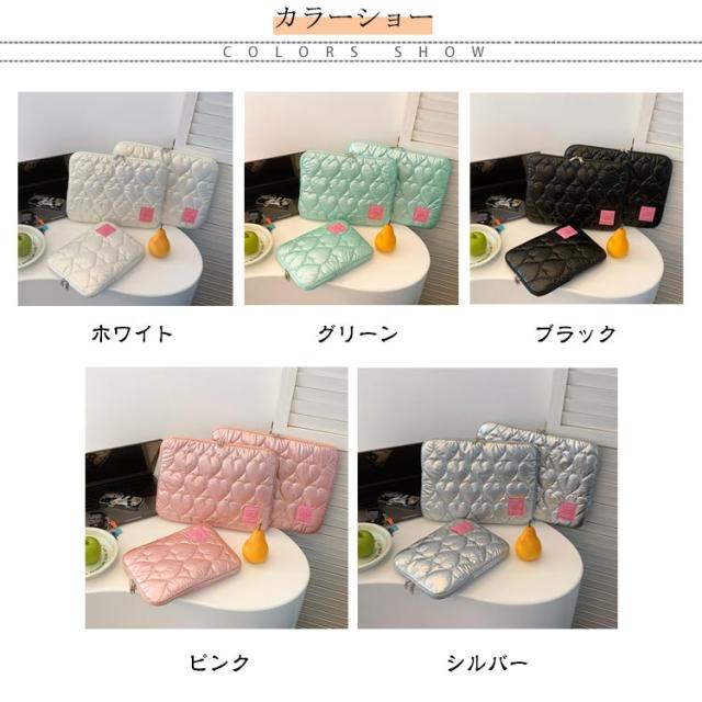 ノートパソコン パソコンケース PCバッグ かわいい レディース 韓国 メンズ パソコンケース 保護ケース PCケース カバン 厚手 ハート柄 オーロラカラー おしゃれ インナーバッグ ブリーフケース キルティング 収納 11 12 13 14 15インチ対応 Macノート用 軽量 通勤