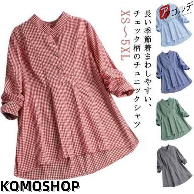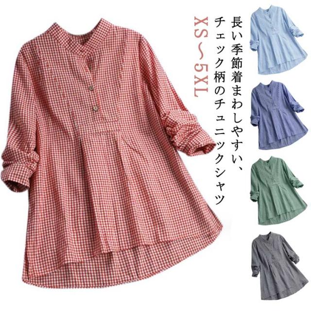 ブラウス チュニックシャツ ロングシャツ キレイめ トップス シャツワンピース ロング丈 春 長袖 プルオーバー チェック柄 可愛い 薄手 体型カバー チュニック ゆったり シャツ 冷房対策 通勤 通学 エスニック ナチュラル 大きいサイズ ギフト 送料無料