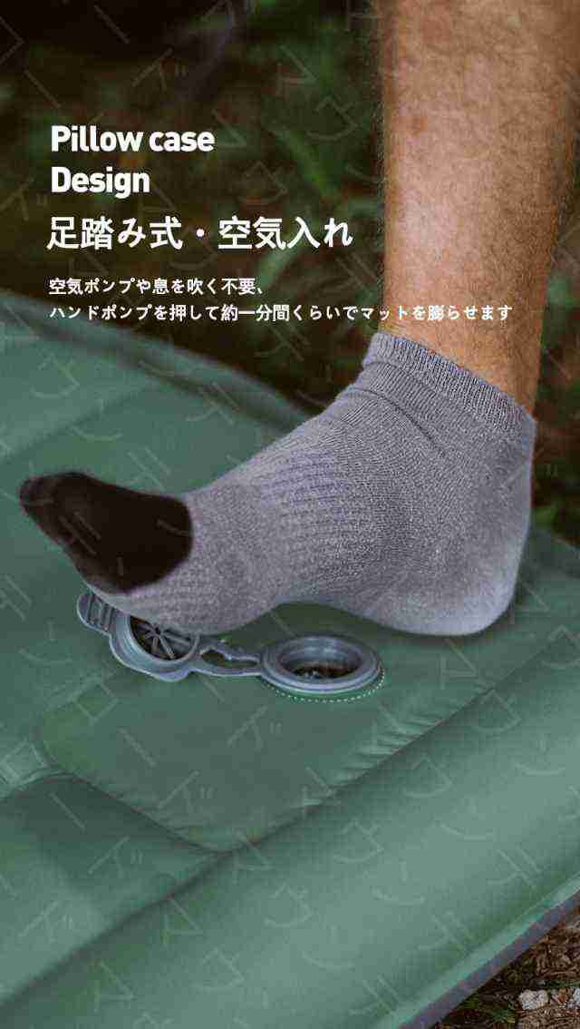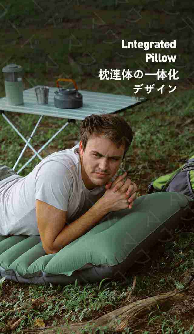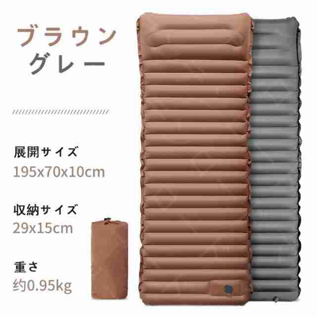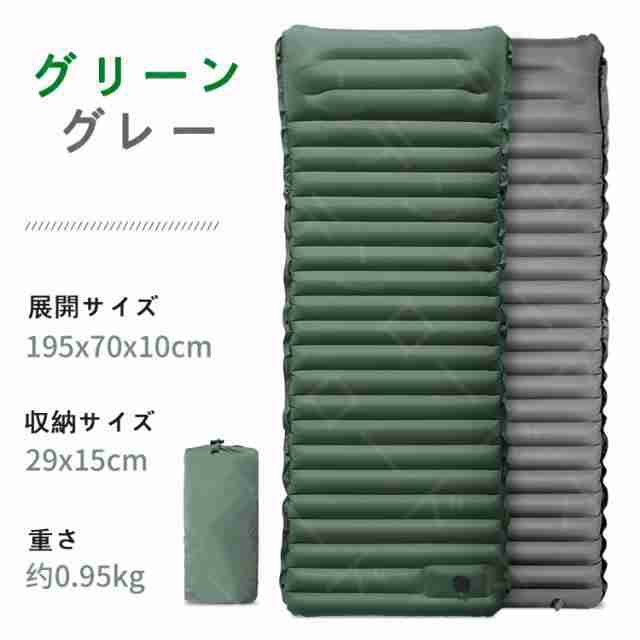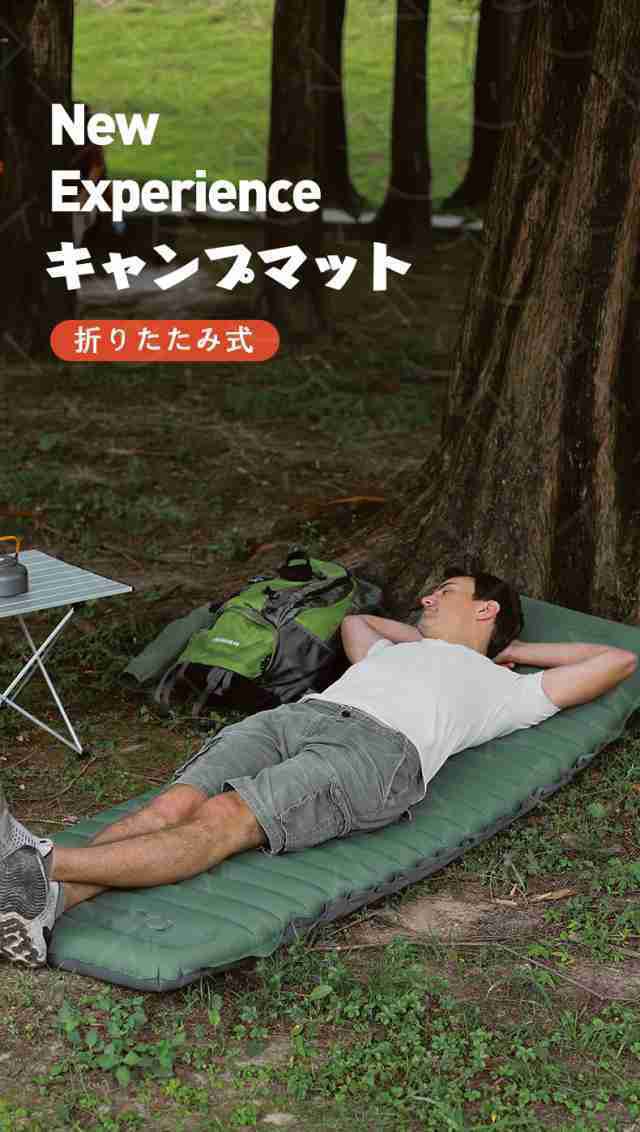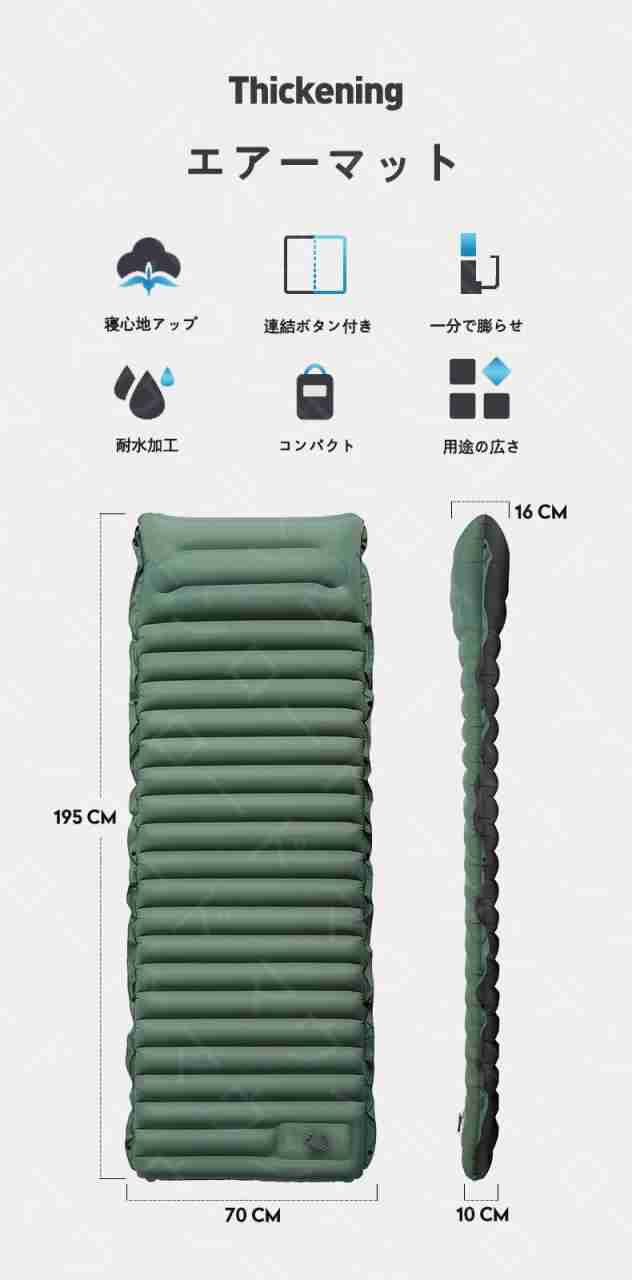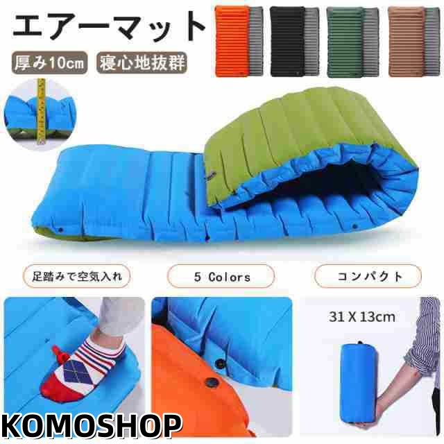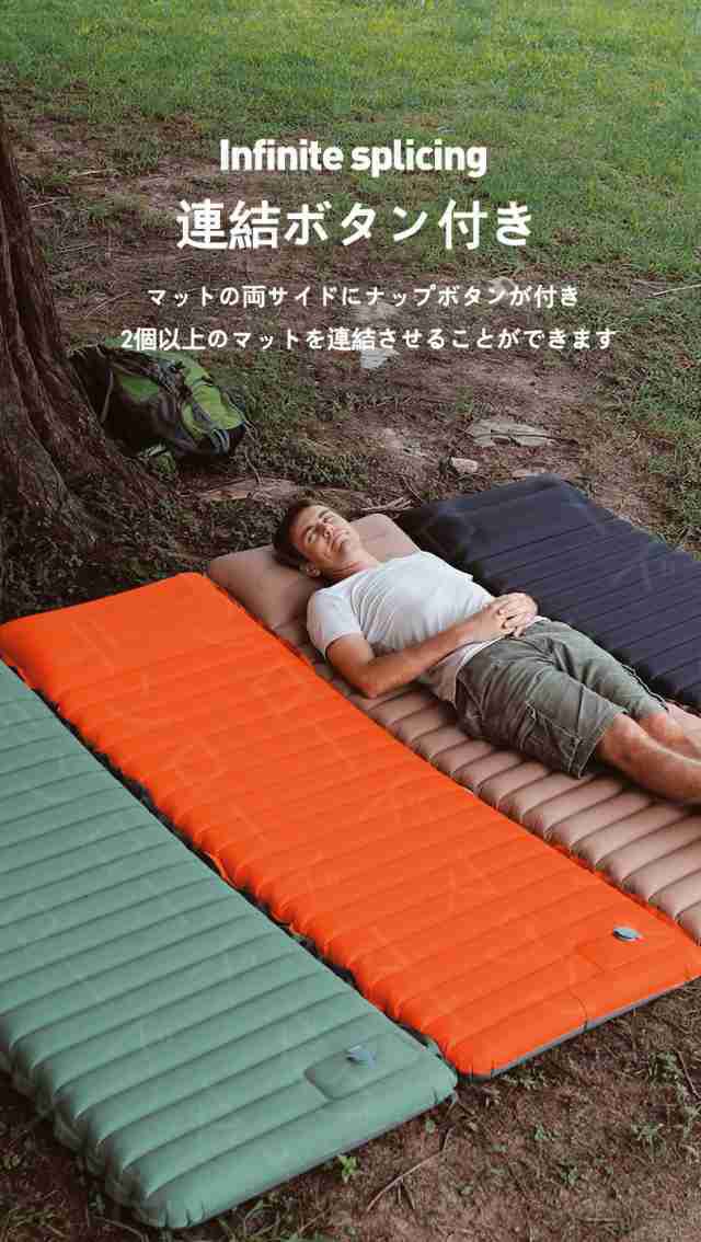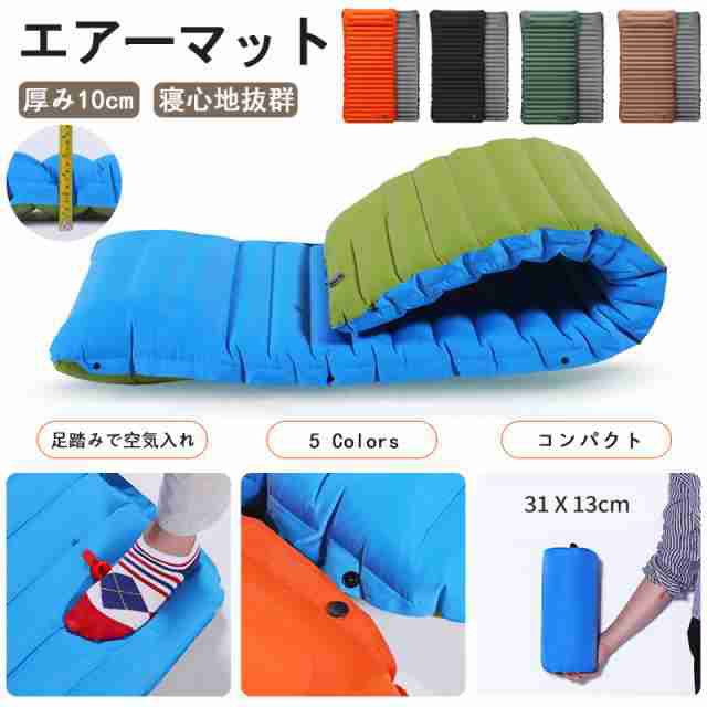 キャンプマット 折りたたみ エアーマット キャンプ 10cm厚さ エアマット 足踏み式 幅広厚手 車中泊マット 軽量 枕付き折畳み式 無限連結