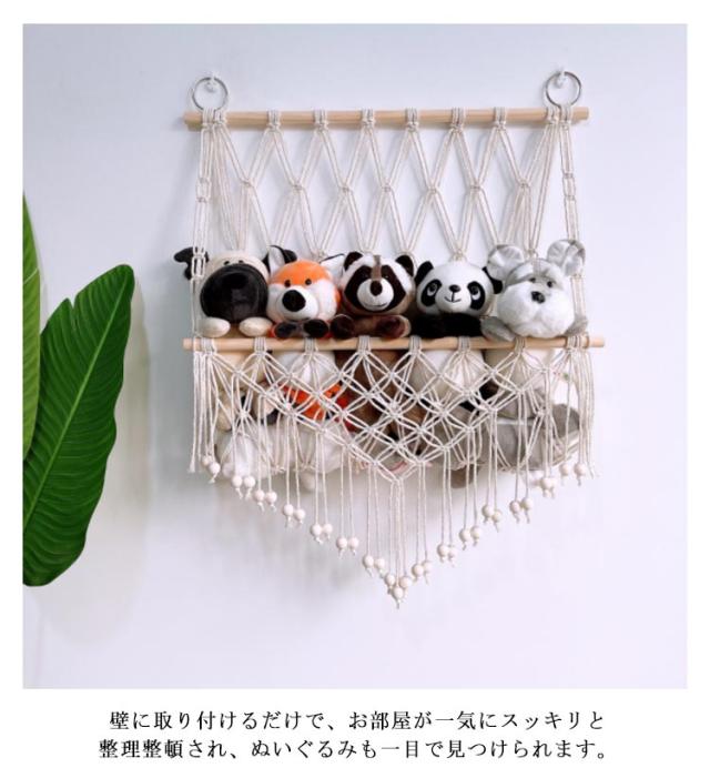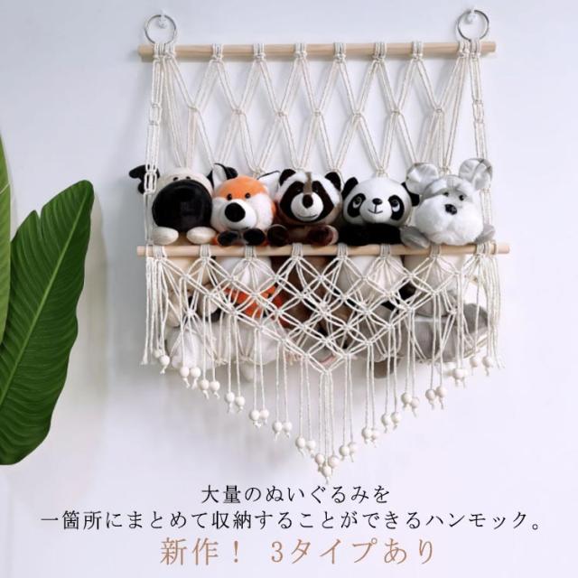 | 新作! 3タイプあり 大量のぬいぐるみを一箇所にまとめて収納することができるハンモック。 壁に取り付けるだけで、お部屋が一気にスッキリと整理整頓され、ぬいぐるみも一目で見つけられます。 おしゃれなデザインは、どんなインテリアにもマッチします。 タッセルをつけると、よりインテリア感の強い、おしゃれな印象に。 子供部屋だけでなく、リビングや寝室など、さまざまな場所に設置できます。 | |