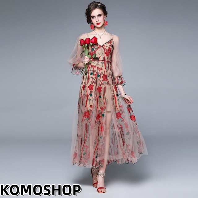 パーティードレス 花柄 ロング ドレス 個性的 透け感 エスニック おしゃれ ワンピース フォーマル 大人かわいい 赤 オフショル ヌーディーカラー ボタニカル 華やか 長袖 春 夏 秋 大きいサイズ 2XL レディース レッド フラワー 結婚式 二次会 お呼ばれ 発表会 演奏会 舞台 衣装 民族風 おしゃれ 他にない インスタ映え かわいい ラブリー シースルー 海外 モデル ファッション トレンド 10代 20代 30代 dress 安い プチプラ no2191
