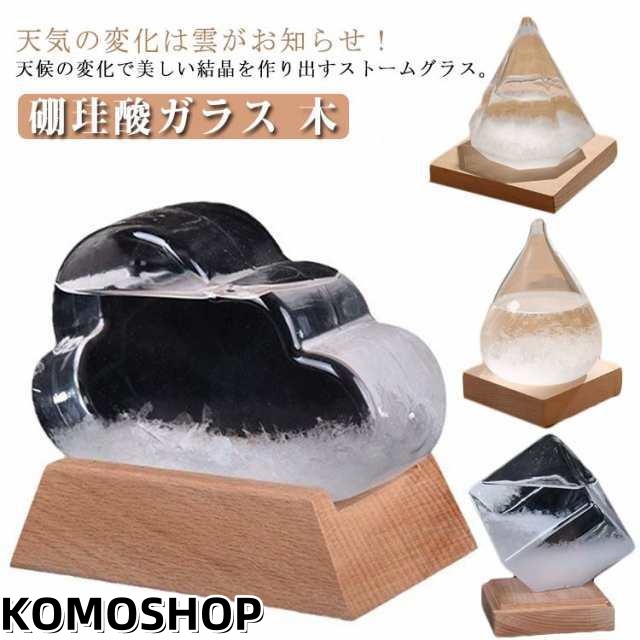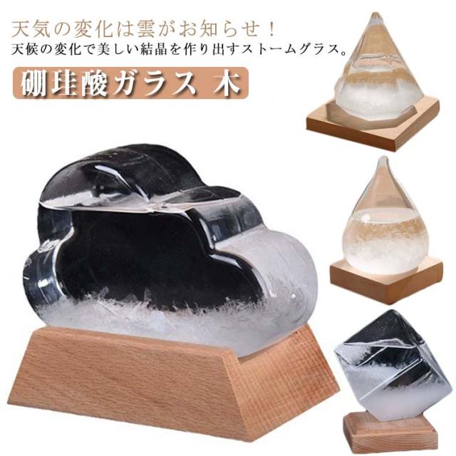 | 天気の変化は雲がお知らせ!天候の変化で美しい結晶を作り出すストームグラス。 天候によって表情を変えるストームグラス。結晶の変化を楽しむオブジェ。 季節の変化や環境の影響により様々な表情を生み出す美しい結晶。環境によって結晶化するまでの時間が異なります。直射日光が当たる場所には危険ですので飾らないでください。 美しく存在感のあるオブジェは、ご友人やお子様への贈り物にもぴったり。 木座が付属!ナチュラルな天然木の土台と、なめらかなガラスの異素材ミックスが可愛いストームグラス。 ストームグラスは19世紀に航海士等が使用していた天候予測器です。 現代では予測器としての実用は難しいですが、季節によって景色が変わるように、日々変化する結晶の様子を『Tempo』でお楽しみください。 | |