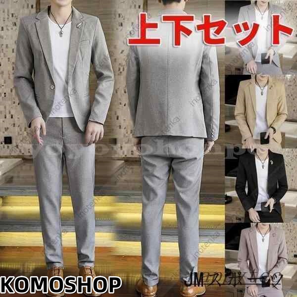 カジュアルスーツメンズセットアップサマースーツおしゃれサマージャケットテーラード長袖スキニーパンツ無地上下紳士服