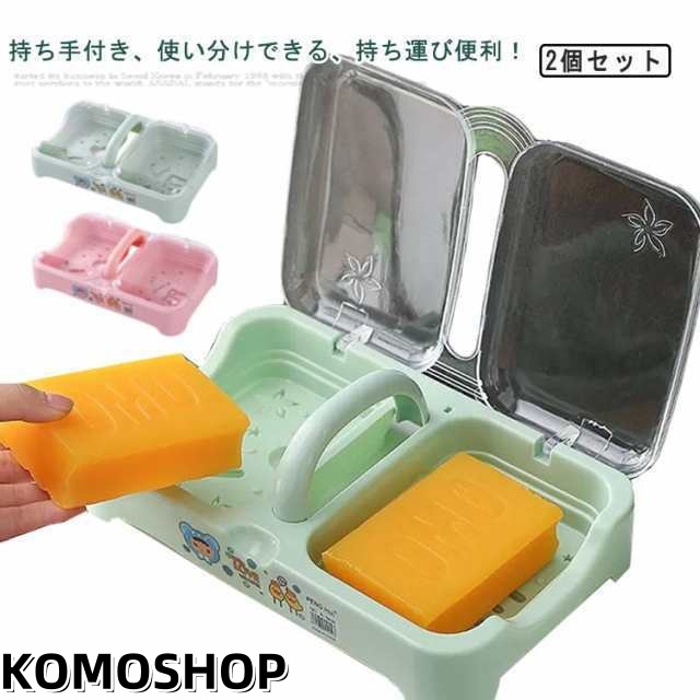 石鹸ケース おしゃれ 石鹸入れ 水切り穴付き 2個入り ダブル フタ付き 持ち手付き 石鹸収納 大きめ 石けん箱 ソープ ケース 石鹸置き ソープディッシュ 洗面用具 バス用品
