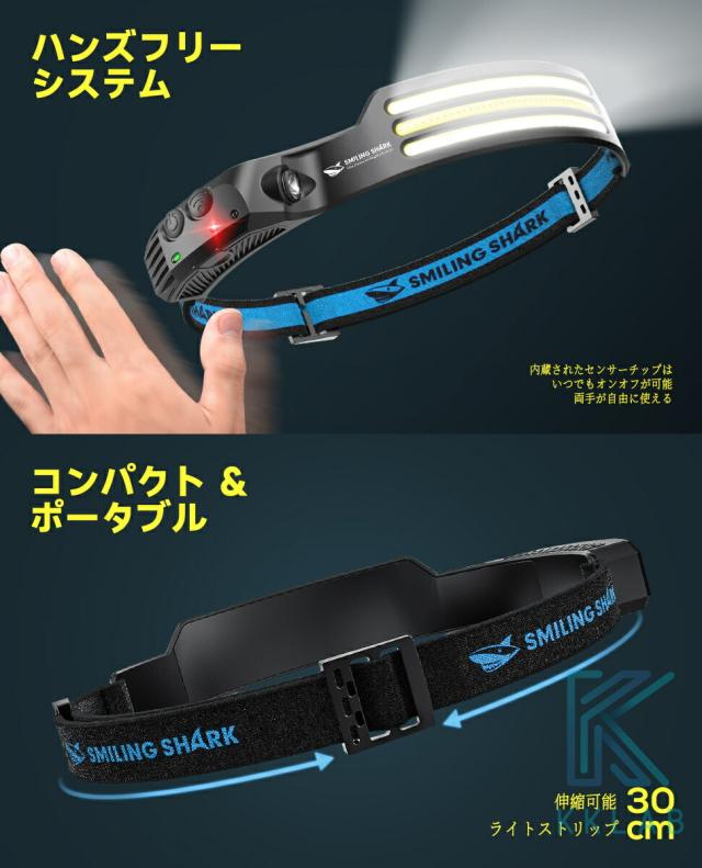 【手を振ることで作動するモーション】内蔵チップは、あなたの指示を感知して、いつでもオン・オフを切り替えることができ、両手を照明のために解放することができる。快適で調節可能なヘッドバンドが付属しているので、ヘッドランプを使えば、仕事、冒険、遊びに両手を自由に使える。