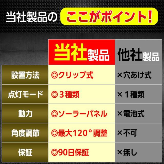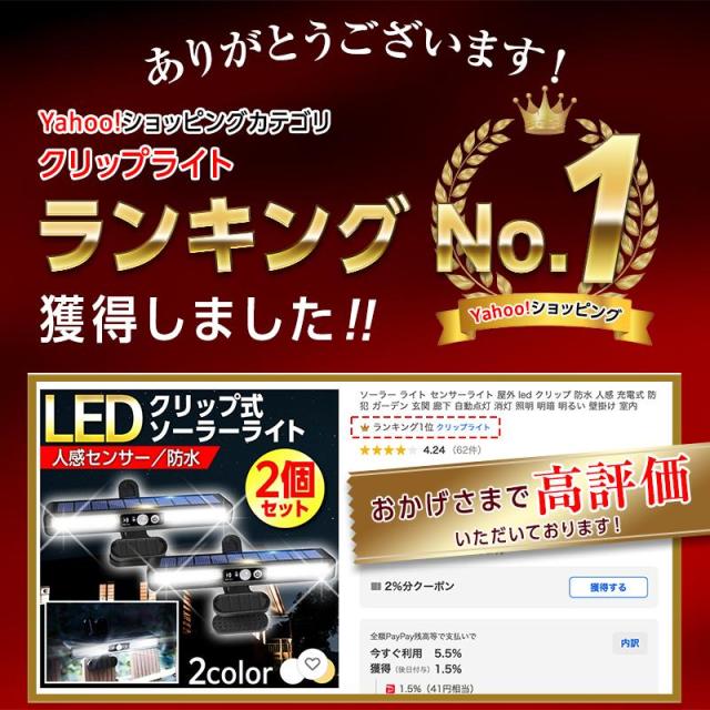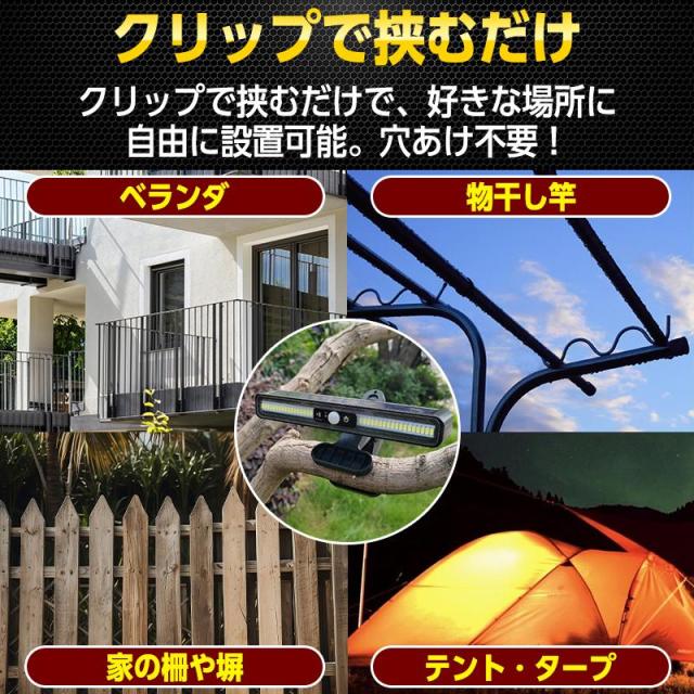 ソーラー ライト センサーライト 屋外 led クリップ 防水 人感 充電式 防犯 強盗 空き巣 ガーデン 玄関 廊下 自動点灯 消灯 照明 明暗 明るい 壁掛け 室内