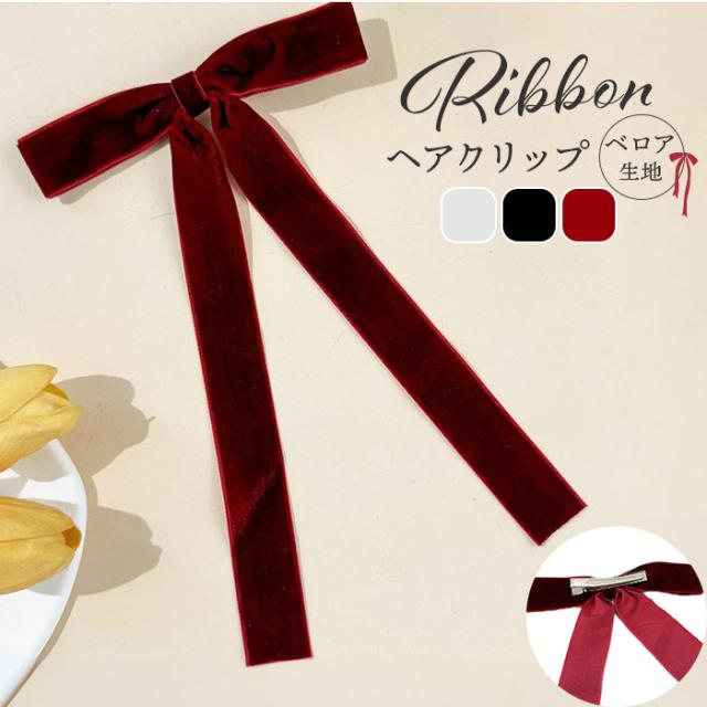 ヘアフック リボン 通販 ベロアリボン ロングリボン ベロア ヘアアクセサリー かわいい おしゃれ 大人 女性 女子 髪飾り 卒業式 入学式 結婚式 二次会 ヘアアレンジ シンプル コンサート 音楽会 ポニーテール カジュアル フォーマル 贈り物 ギフト