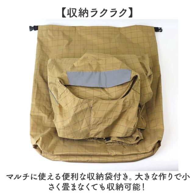 | サイズ | 【ポンチョ】 [着丈]約104cm/[幅]約105cm/[裄丈]約88cm 【収納時】 [縦]約20cm/[横]約27cm/[厚さ]約6cm 【バッグ時】 [縦]約58cm/[横(底部)]約38cm/[マチ]約18cm ※当店規定の採寸方法にて商品を実測しております。 多少の誤差やメーカー表記サイズと異なる場合がございます。 ※アパレルについては平置き状態にて外寸を計測しております。 (ウエストなどはウエスト幅×2での表記になっています。) |