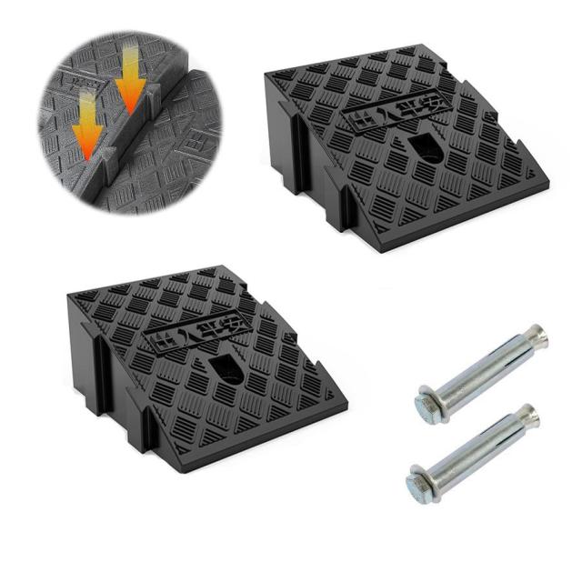 段差スロープ 段差プレート2個 段差解消スロープ 自転車 バイク スロープ 7?15cmの段差解消 夜間反射 固いプラスチック製 滑らない アンカーボルト付き