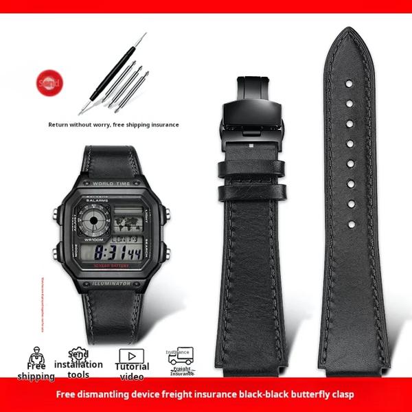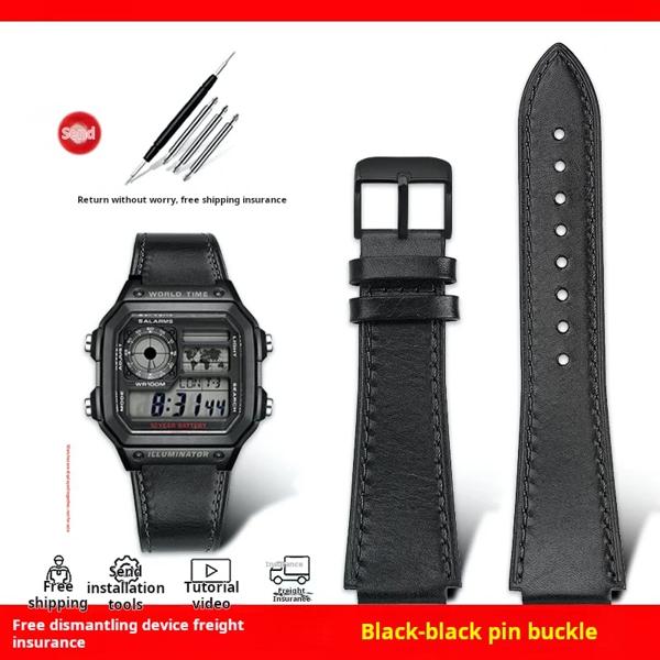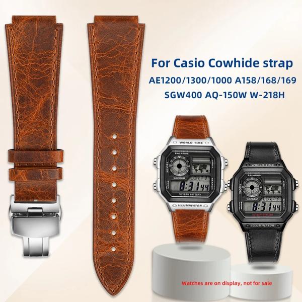 AE1200 修正された革時計ストラップカシオ AE-1200/1300/1000 / A159 / A158 凸面インターフェイスメンズヴィンテージレザー時計バンド