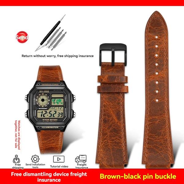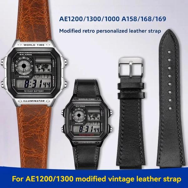 カシオ腕時計 AE1200 AE-1200 AE1300 A158 A168 AQ-150W W-216H F-108 ヴィンテージ牛革レザー時計バンドストラップ男性 18 ミリメートルブレスレット