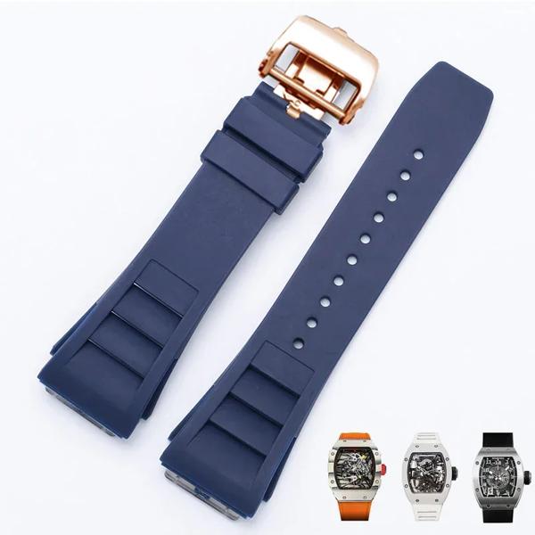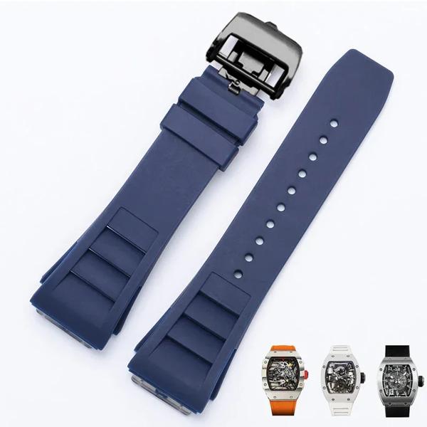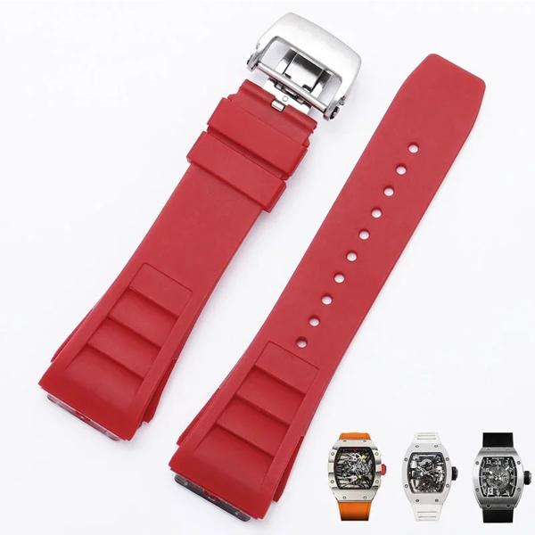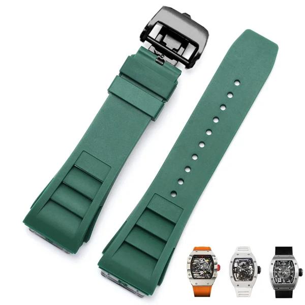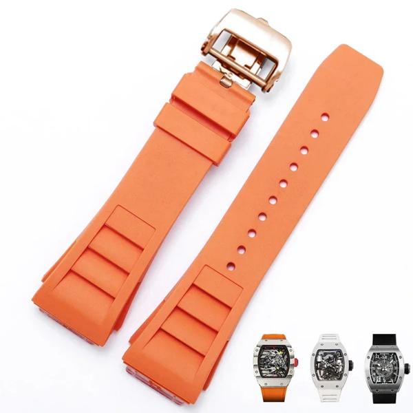 ゴム製の折りたたみ式バックル付き時計ストラップ,凸型インターフェイス,ソフトマルチカラー,通気性のあるシリコンウォッチストラップ,RM-11, 25mm