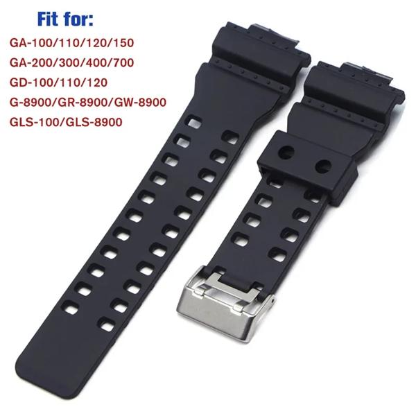 カシオ用シリコンラバーストラップ,交換用バンド,黒,防水,gショック,GD-100, G-8900, GA-120, 16mm