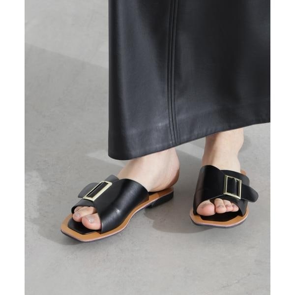 大き目のバックルが洗練されたアクセントを効かせるフラットサンダル。クッション性のあるインソールで履き心地が良く、カジュアルにもレディなスタイルにも幅広くマッチします。