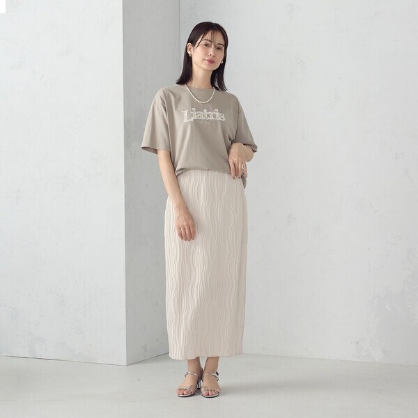 ロングスカートやシアーアイテムなどのシーズンアイテムを合わせて