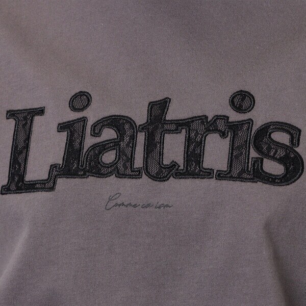 レースをパッチワークしたロゴTシャツ。